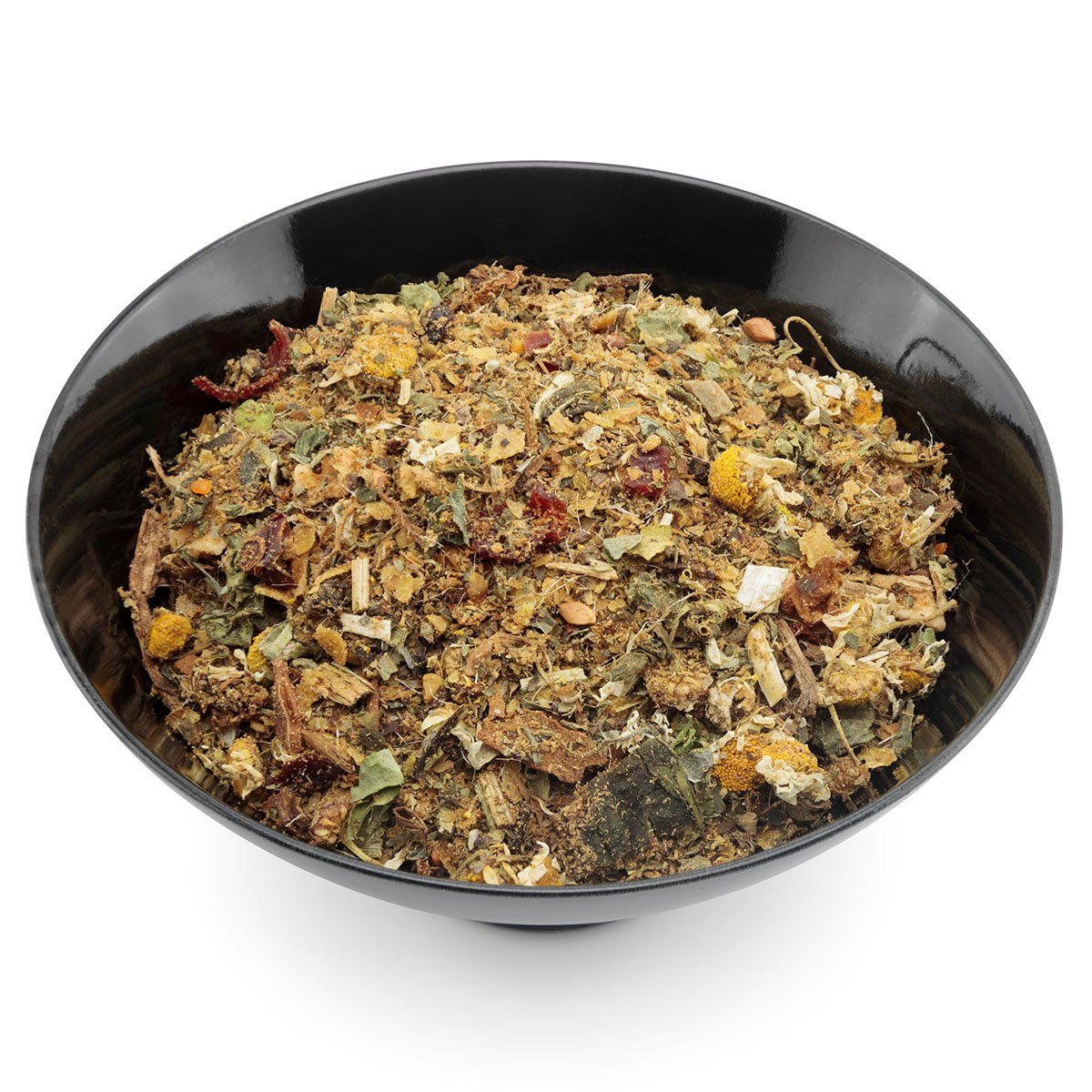 Goldleinsamen, Bockshornkleesamen, Apfel, Basilikum, Löwenzahnkraut, Bierhefe, Aloe Vera, Hagebutte, Gänseblümchen, Benediktenkraut, Leinöl