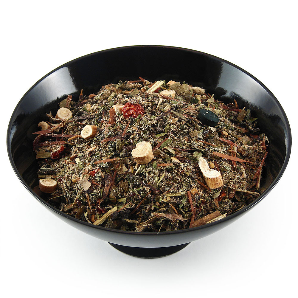 Tragantwurzel, Jiaogulan, Gingkoblätter, Weißdornblätter mit Blüten, Bierhefe, Lapachorinde, Melissenblätter, MSM (Methylsulfonylmethan – organischer Schwefel), Mädesüß, Löwenzahn, Hagebuttenfrüchte, Bockshornklee, Knotentang, Kieselerde, Goldleinsamen, Chlorella Alge, Spirulina Alge, Grünlippmuschelpulver, Ginseng, Hanföl