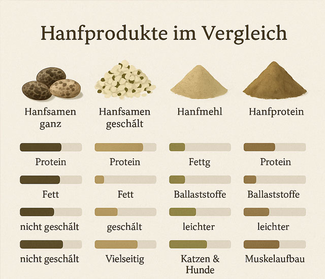 Ganze Samen, geschälte Samen, Hanfmehl & Hanfprotein – ein Überblick