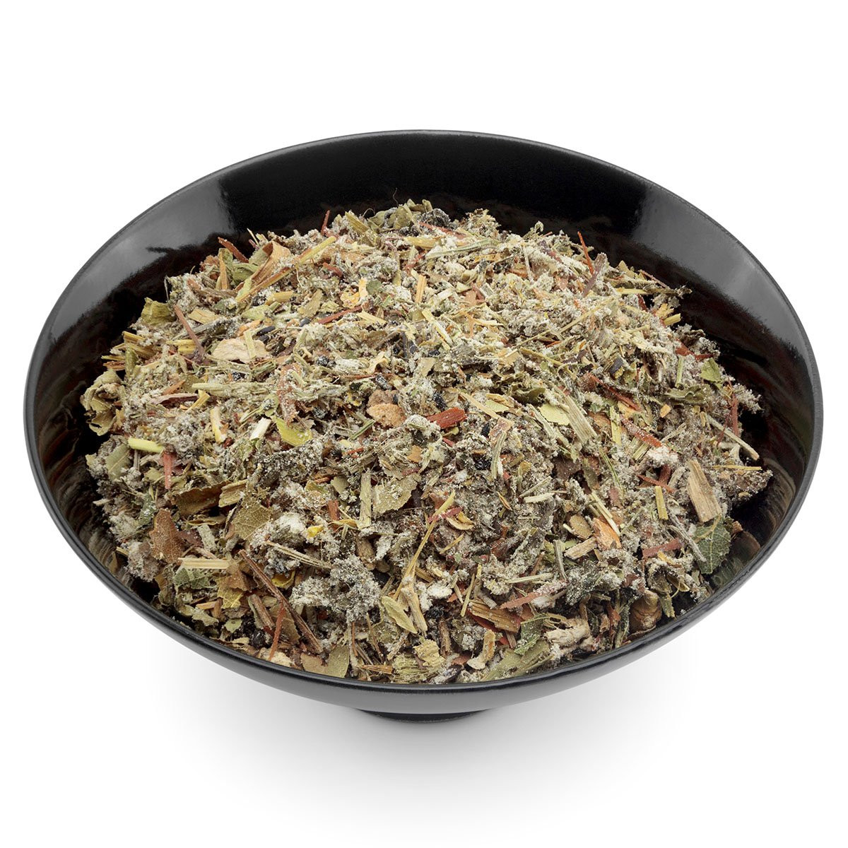 Schwarzkümmelsamen, Sesam schwarz, Zistrose kretisch, Stiefmütterchen, Jiaogulanblätter, Nachtkerzensamen, Birkenblätter, Lapachorinde, Löwenzahnkraut mit Wurzeln, Schachtelhalmkraut, Hirtentäschelkraut, Birkenrinde, Brennnesselblätter, Brennnesselsamen, Klettenblätter, Klettenwurzel, Klebkraut, Queckenwurzel, Kieselerde, Knotentang, Bierhefeflocken, Schwefelblüte, Biotin, Zink Chelat, Bentonit, Kieselgur 30, Spirulina, Leinöl