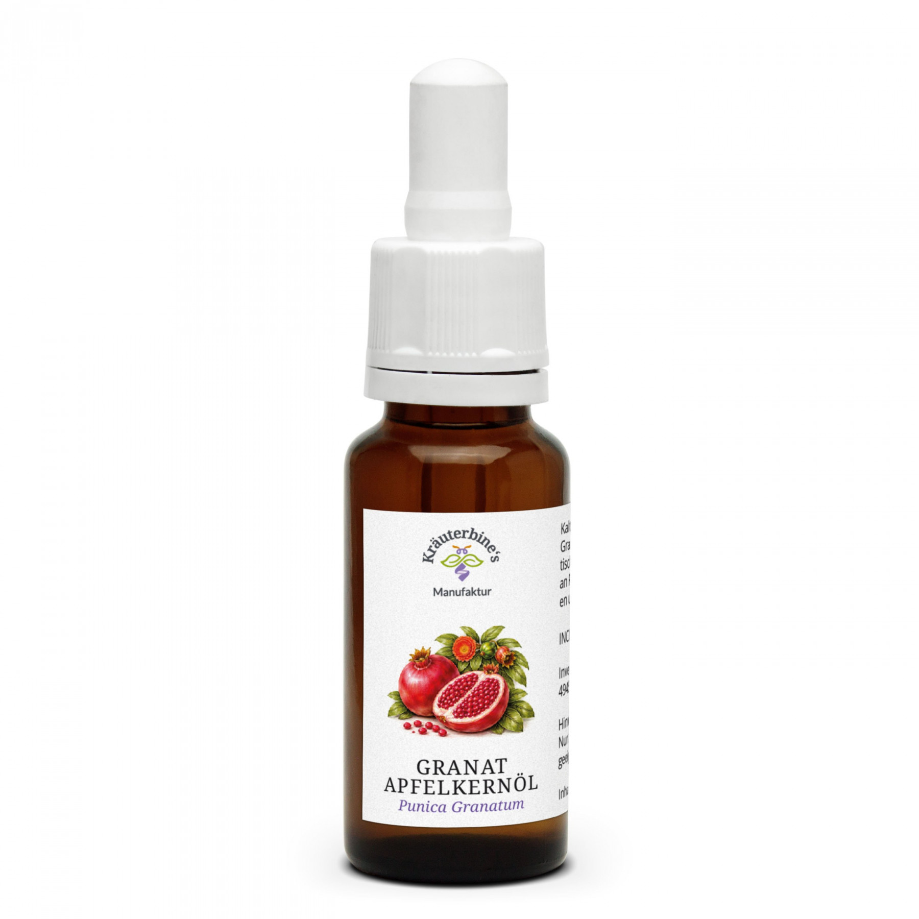 Der Granatapfelbaum (Punica granatum) stammt aus den sonnenreichen Regionen Westasiens und des Mittelmeerraums. Seine Samen enthalten ein besonders wertvolles Öl, das durch schonende Kaltpressung gewonnen wird.
