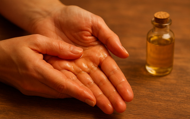 Das Öl kann pur oder tropfenweise beigemischt in einer Creme für die Haut angewendet werden.