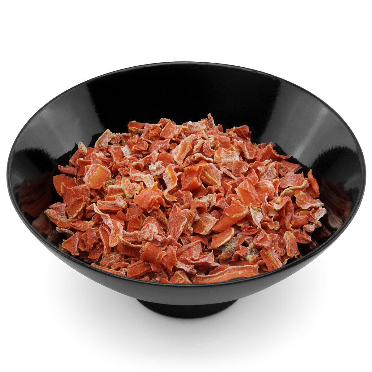 Karotten-Chips in warmem Wasser einweichen oder trocken füttern.