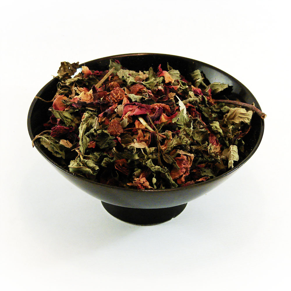 Hibiskusblüten, Ananas, Ceylon-Zimt, Hagebuttenschalen, Birkenblätter, Pfefferminzblätter, Brennnesselblätter, Ingwer, Rosmarin, Chilis, Rosenblütenblätter, Petersilienblätter, Gewürznelken, Steinkleekraut